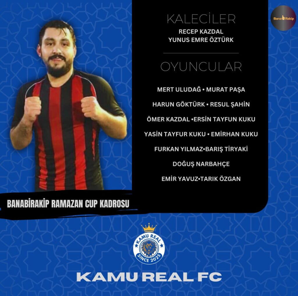 Başarılar BANABİRAKİP FİKSTÜRLÜ LİG FİNAL Katıldığı Turnuva 2 6 Atılan Gol Sayısı 2025 Kuruluş Tarihi 15 Oyuncu Sayısı Takım Kadrosu Champion Galeri Forma Oyuncular MAÇ SONUÇLARI 0 FORMALAR